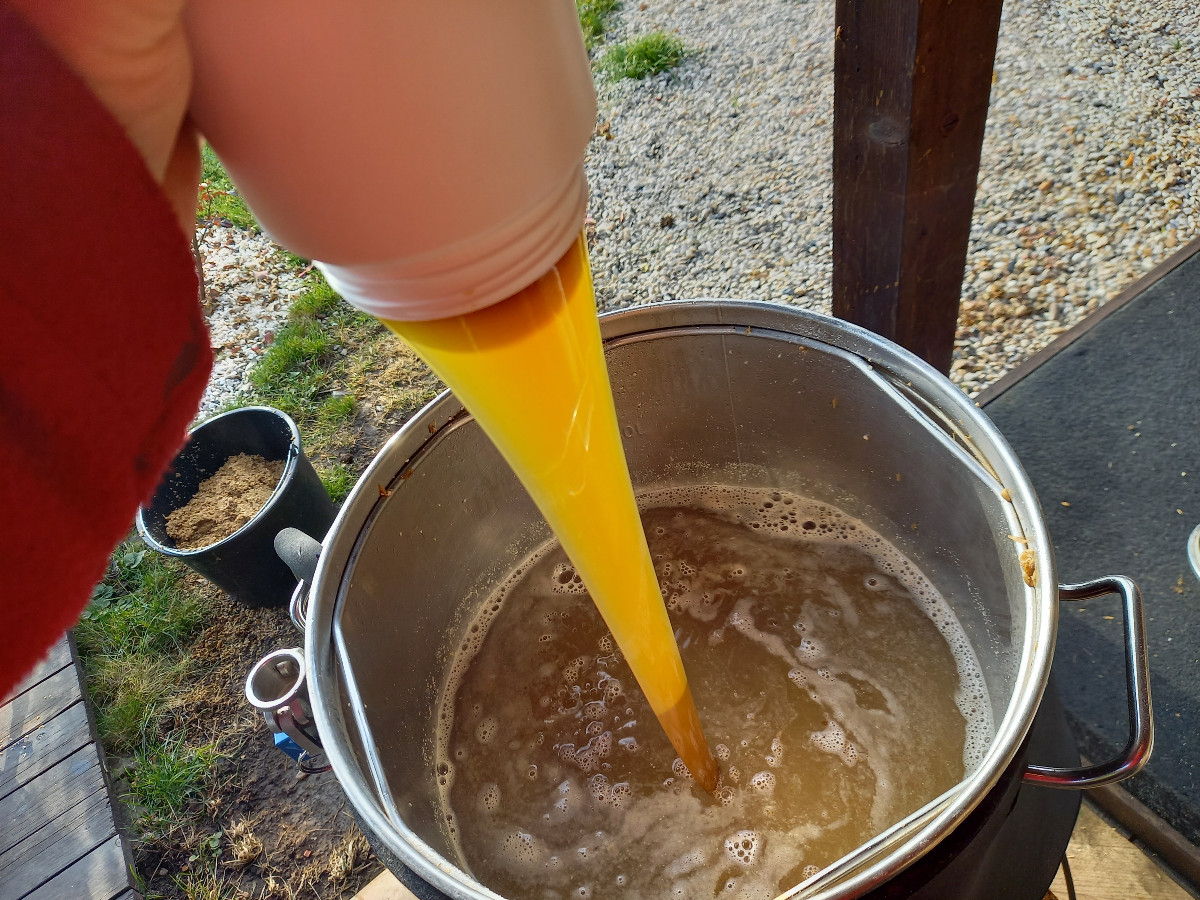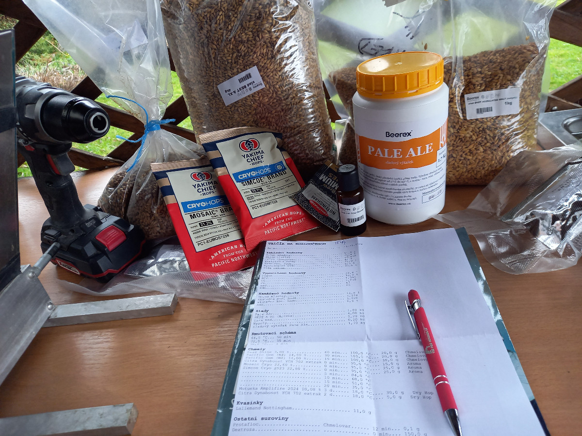 K pivu: Chtěl jsem něco speciálního, takže poprvé byl, mimo klasických surovin, použitý sladový výtažek (Pale Ale) a chmelový olej (Citra Dynaboost). Výtažek měl posloužit zvýšení hustoty, ale udělal spíš více škody než užitku. Tím, jak je hustý a táhne se jako kšandy, přistál rovnou na dně hrnce a způsobil připáleninu, musel jsem improvizovat - ale moje chyba, měl jsem s tím počítat. Chmelový olej se také choval divně, udělal v díle podivné slizké sraženiny.